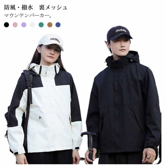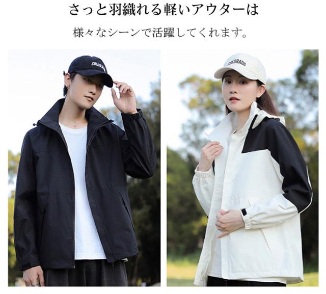 撥水 マウンテンパーカー レディース ペア メンズ 送料無料 フード ウインドブレーカー ジャンバー ジャケット ブルゾン アウター 防風 通気性 配色 バイカラー マウンテンパーカー コート 春 冬 秋 ユニセックス アウトドア キャンプ おしゃれ