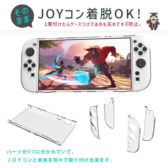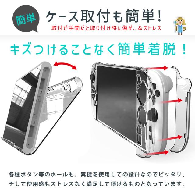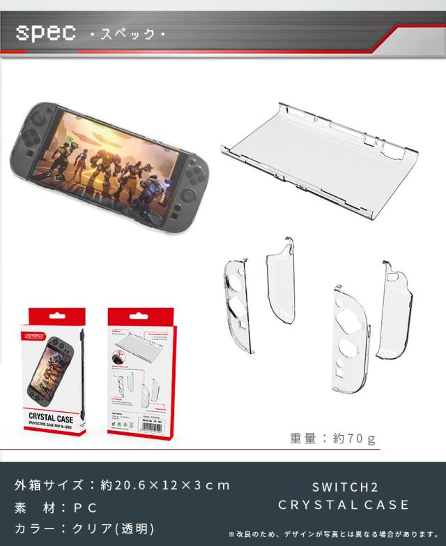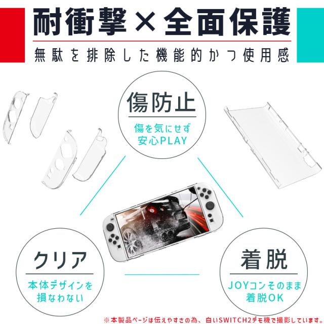 ●Switch2専用クリアPC、耐衝撃カバー●【軽量&耐衝撃】軽くて丈夫なPC素材を使ったクリアケースなので、軽量ながらも耐久性があります。ハードタイプで設計も細かくされているため、簡単着脱な上、ピタッとハマります。屋内保管はもちろん、旅行や友達の家、持ち運びにも傷の心配なく大活躍!【Switch2のために設計】実デバイスをもとに設計されたディティールで、機能はもちろん、見た目にもこだわった新作です。つけたままJOYコン着脱でき、各ホールもしっかりフィットます。【取り付け簡単】紹介画像のように取り付けていくだけで、ストレスなくはまります。