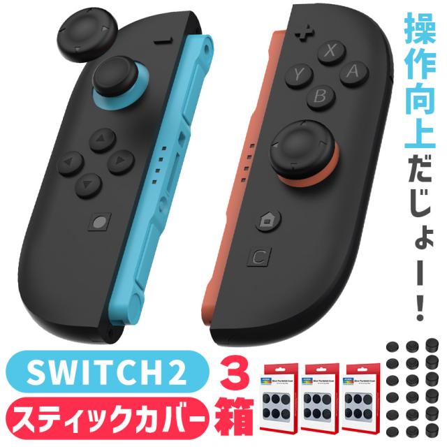 Nintendo Switch2 スティックキャップ 3箱18個入 高さ3種セット JOYコン ニンテンドースイッチ2 ジョイコン スティックカバー スイッチ2 左右 親指 操作性向上 本体 保護 エイム 向上 洗える シリコン ブラック はめるだけ