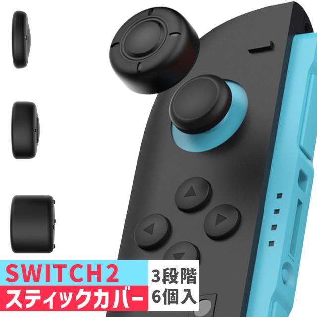 Nintendo Switch2 スティックキャップ 1箱6個入 高さ3種セット JOYコン ニンテンドースイッチ2 ジョイコン スティックカバー スイッチ2 左右 親指 操作性向上 本体 保護 エイム 向上 洗える シリコン ブラック はめるだけ