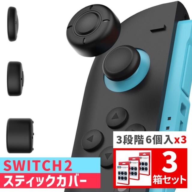 Nintendo Switch2 スティックキャップ 3箱18個入 高さ3種セット JOYコン ニンテンドースイッチ2 ジョイコン スティックカバー スイッチ2 左右 親指 操作性向上 本体 保護 エイム 向上 洗える シリコン ブラック はめるだけ