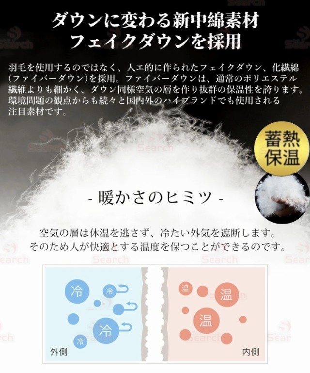 ■素材:コットン、ファイバーダウン、ポリエステルなど