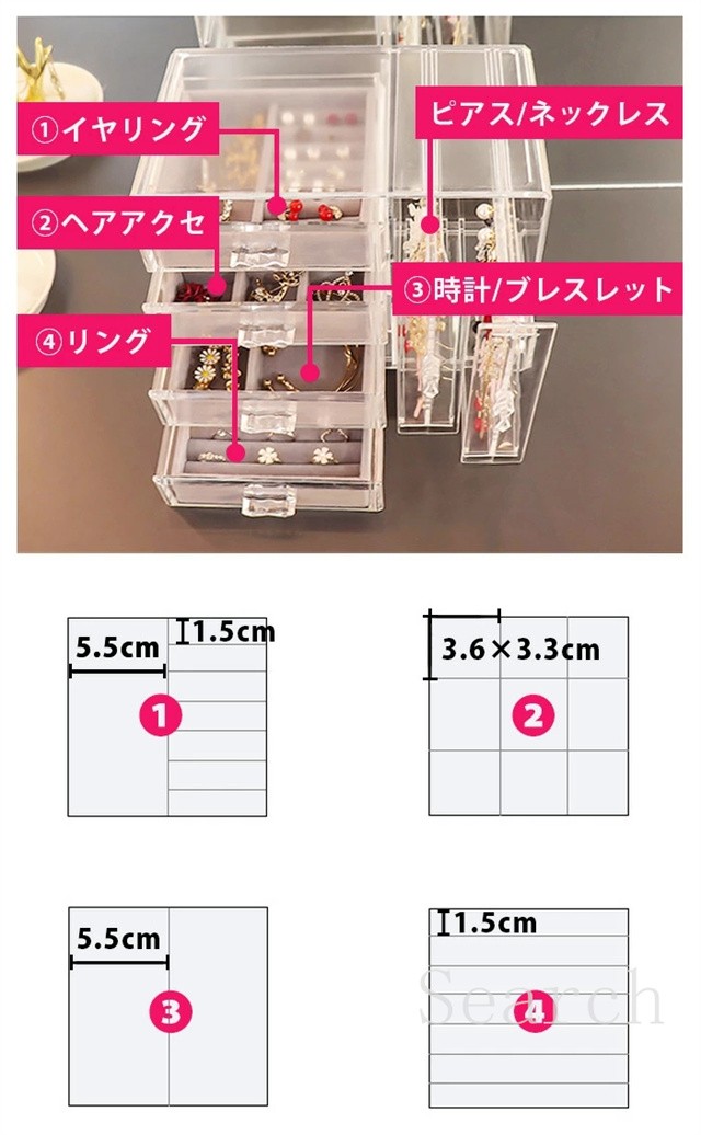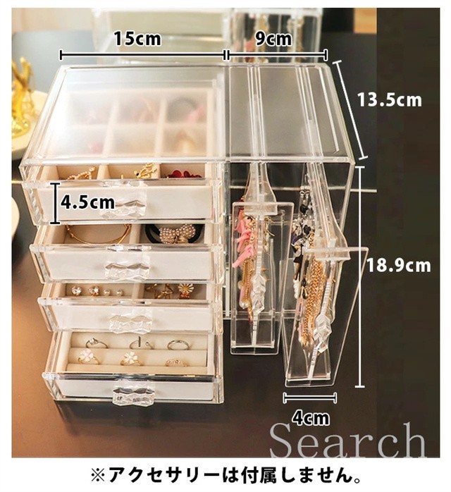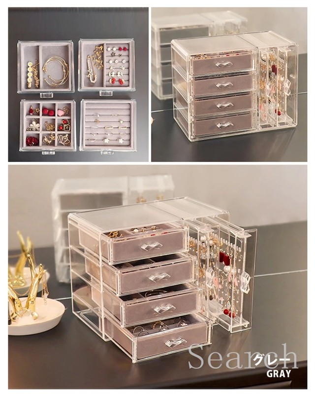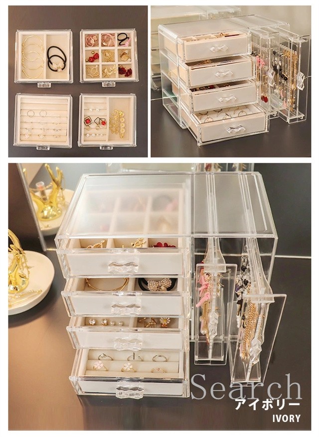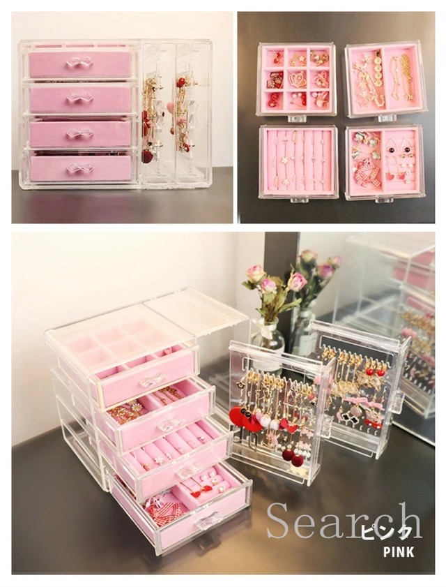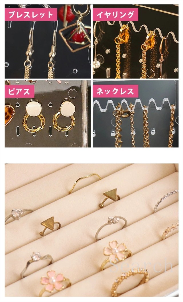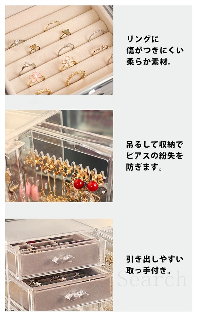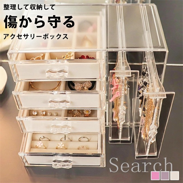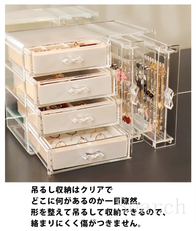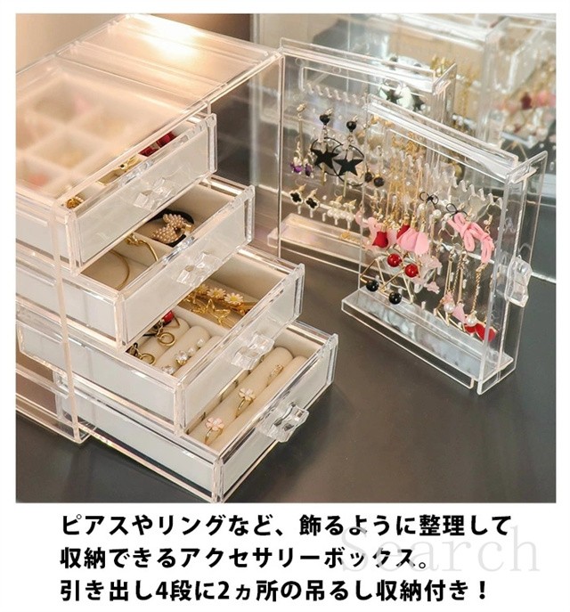 ジュエリーボックス アクセサリー スタンド アクセサリーケース 収納 ボックス 収納ボックス 収納ケース 引き出し 仕切り イヤリング ピアス フック ネックレス 掛け ヘアアクセ リング