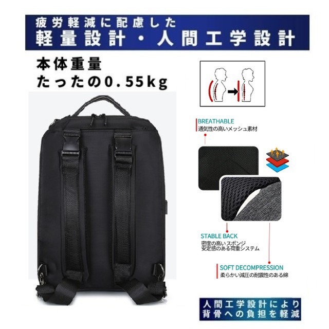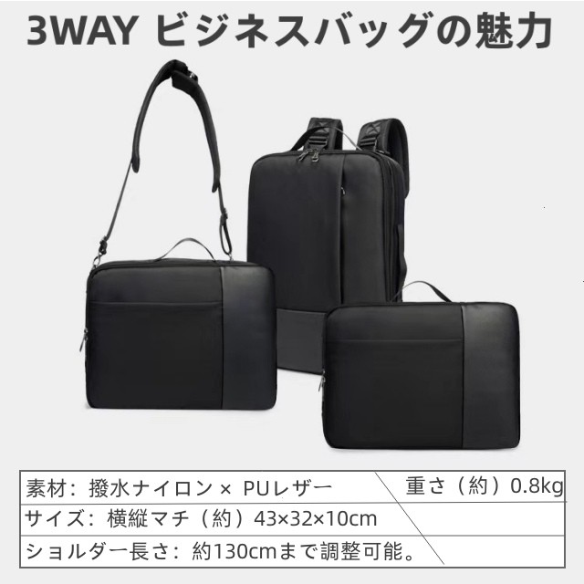 ビジネスリュック メンズ リュックサック ビジネスバッグ リュック 3way 防水 ナイロン 大容量 軽量 多機能 通学 通勤 出張 旅行 デイパック ショルダー
