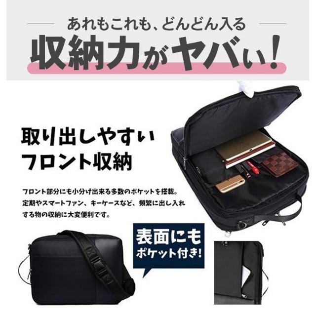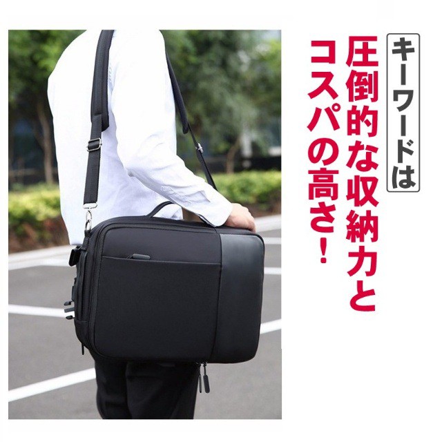 手提げ、リュック、ショルダーバッグの3WAYビジネスバッグです。