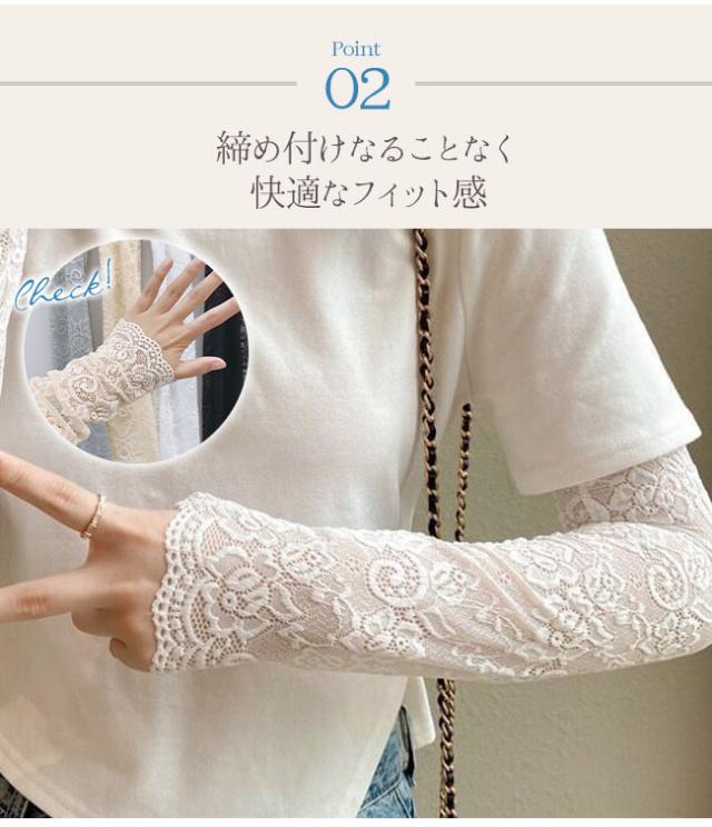 春新作 アームカバー 夏用 レディース ロング レース おしゃれ ゆったり 日焼け防止 uvカット 運転 手の甲 手甲 二の腕 冷え対策 指穴 なし 落ちない ポイント消化 母の日