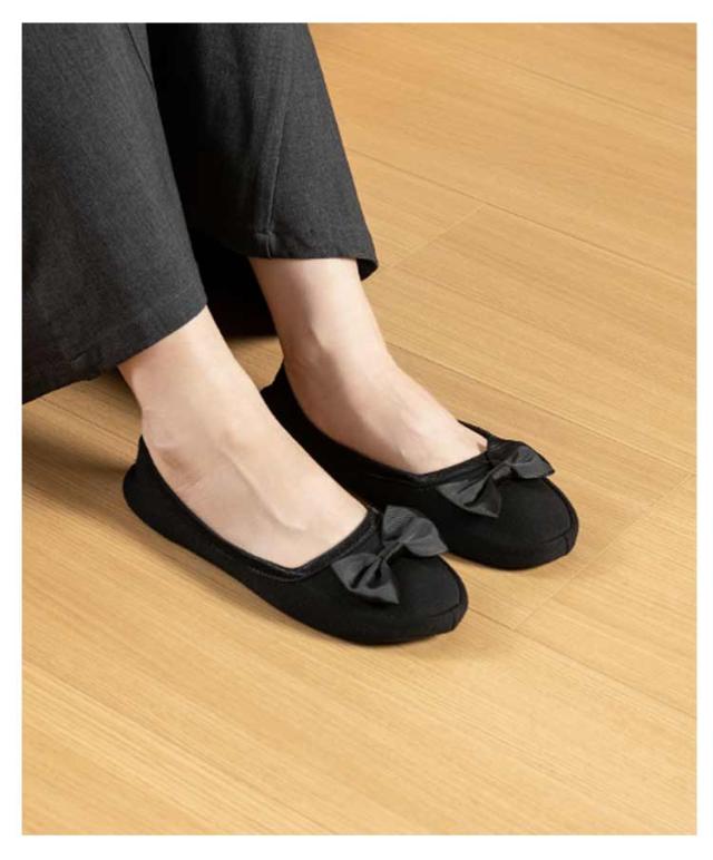 | 【様々なシーンでマルチに活躍してくれる携帯用スリッパ】 スリッパを半分に折りたたみ、付属のポーチ・巾着に収納可能となっており、荷物もかさばらずコンパクトなサイズ感に〇 学校行事や旅行先、飛行機の中、オフィスでの休憩、防災グッズとしてもオススメのアイテムです。 【きちんと感のあるデザイン】 きちんと感のあるデザインながら、柔らかな履き心地。 履き口周りはゴム仕様でフィット感が◎かかとがパカパカの心配もありません。 主張しすぎない小さなリボンが大人可愛いポイント。 【便利な巾着ポーチ付き】 スリッパは二つ折りにして付属の巾着ポーチにサッと収納! とってもコンパクトに持ち運びができます。 【手入れのしやすい底面】 底面は汚れが気にならない合成皮革。 水気や汚れもサッと拭きとりやすい! | |