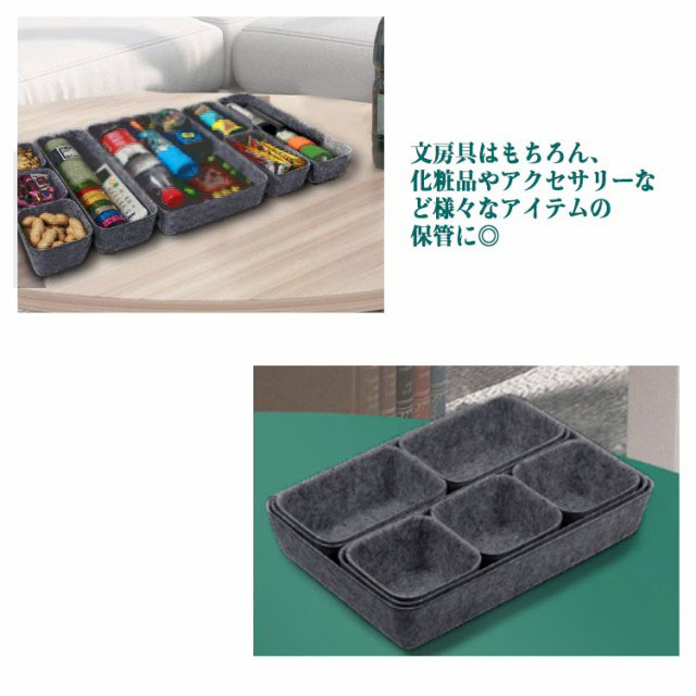 | 散乱しがちな引き出し内をスッキリ整頓!フェルト素材の仕切りトレー 8個セット 「使いたいアイテムがどこにあるかわからない…」といったごちゃごちゃな引き出し内を綺麗に整理整頓する仕切りトレーです。 文房具はもちろん、化粧品やアクセサリーなど様々なアイテムの保管に◎ 手触りが良いフェルト生地を採用しています。 引き出し内の整理整頓だけでなく、シーンに応じて卓上に置いて活用することもオススメ。 ふわっとした可愛い色合いで卓上に華やかさがプラスします。 | |