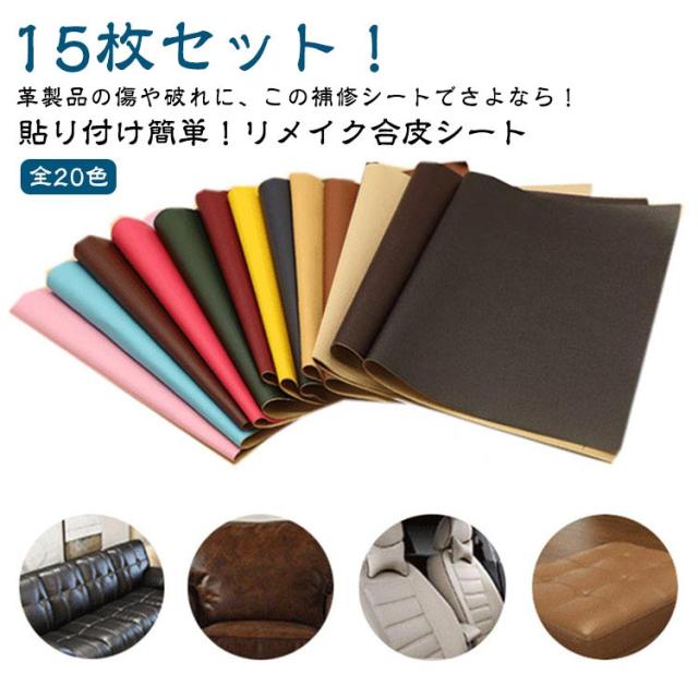 バイクシート補修 リメイクシート チェア 合皮補修シート 合皮補修シート 補修シート 合皮 20×30cm 15枚入り フェイクレザー生地 補修シート 貼るレザー レザー シールタイプ ソファ 生地 椅子用 テープ 破れ 裂け 貼るだけ 防水 車 シートカバー 財布 バッグ 修理