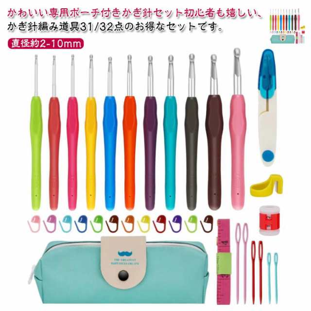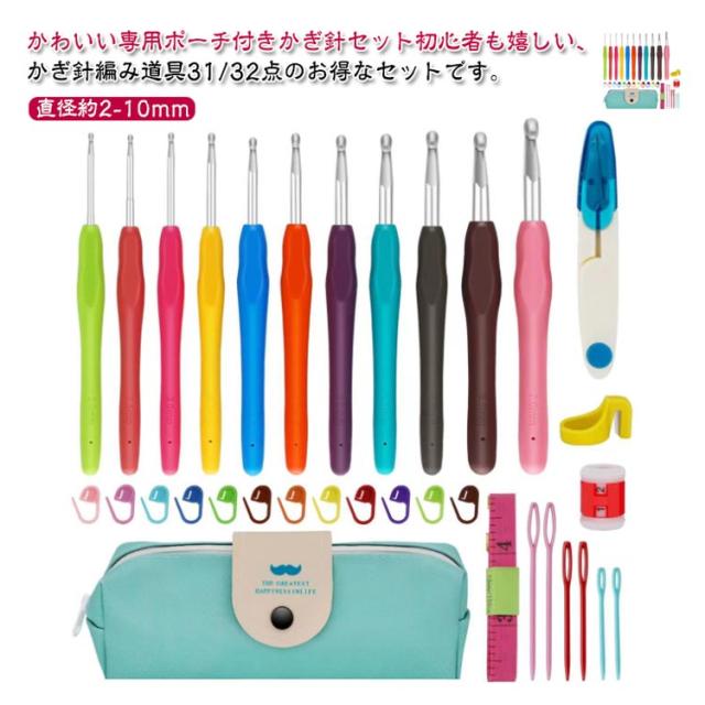 送料無料 かぎ針 31/32点セット 編み針 かぎ針セット 編み物 手芸 収納ケース付 編み針セット かぎ針編み キット 編み物 手芸 裁縫道具 編み物道具 棒針 毛糸 手編み 帽子 ニット セーター マフラー あみぐるみ 初心者向け レース編み