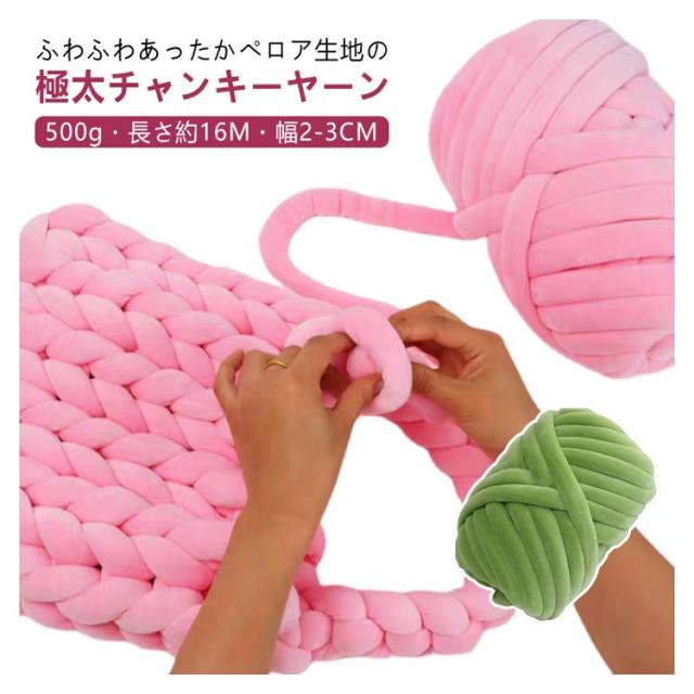 チャンキーニット ぺロア生地 毛糸 極太 500g 長さ約16M 幅2-3CM ベロア 表生地 ふわふわ ニットヤーン ウール 極太毛糸 手芸 編み物 太い ヤーン ハンドメイド ブランケット バッグ クッション インテリア カウチ マンドゥバッグ チャンキーヤーン DIY 毛糸 【送料無料】