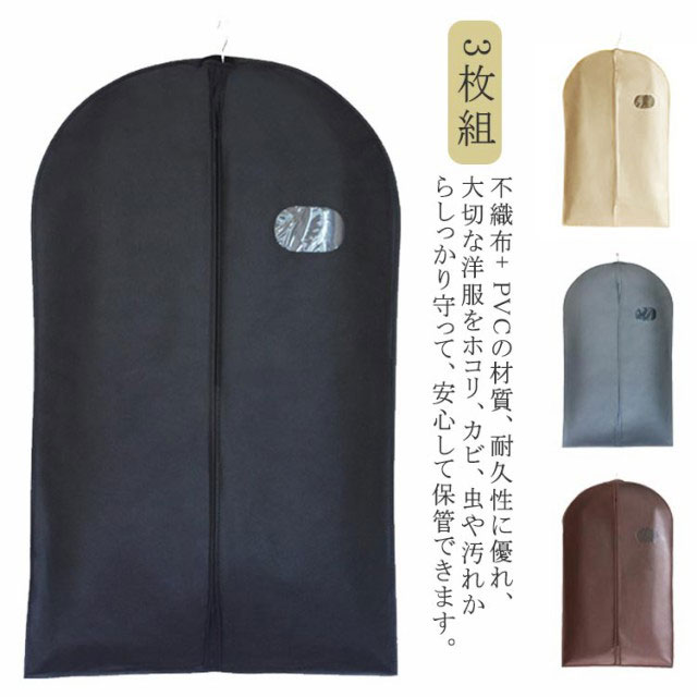 洋服カバー コート 3枚組 透明窓付き スーツカバー ロング 不織布 ショート ポケット 衣類収納 衣類カバー ハンガーラック クローゼット ほこり防止 防虫 防塵 防湿 セット ファスナー付け 使いやすい 型崩れ防止 スーツ