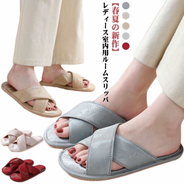 スリッパ ルームシューズ シルクタッチ レディース 前開き ルームスリッパ ぺたんこ 夏用 軽量 涼しい カジュアル おしゃれ 可愛い 女性用 オフィス 職場 仕事 来客用 部屋履き ゴールド グレー ピンク