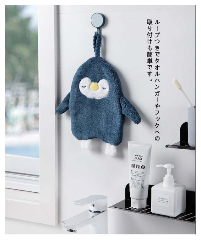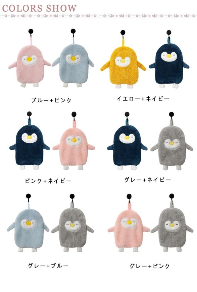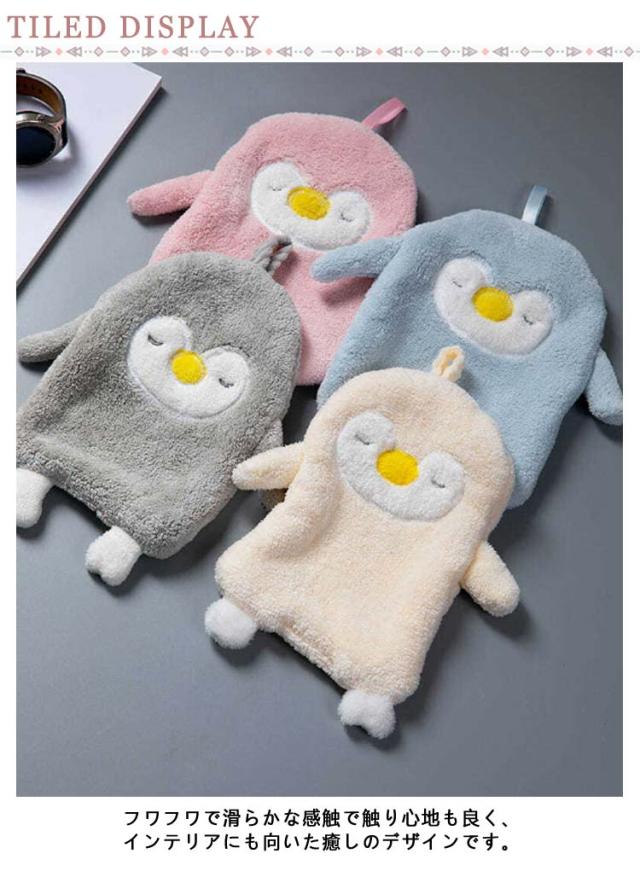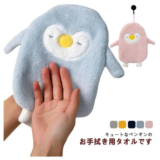 2枚セット ハンドタオル お手拭き ペンギン 可愛い マイクロファイバー 吸水 速乾 もこもこ ループ付き キッチンタオル キュート デザイン性 おしゃれ かわいい プレゼント 新築祝い おすすめ