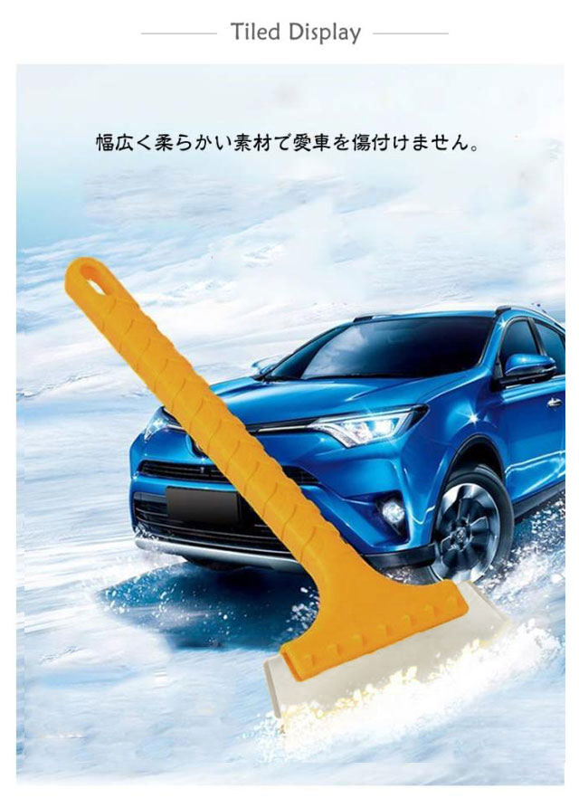 | 幅広く柔らかい素材で愛車を傷付けません。 凍結防止性もよくて、滑り止め加工、持ち心地よく、使いやすい。 ABS素材という丈夫な素材を使って、車のガラスを傷つけないので、安心して使います。厚い氷と雪を簡単に取り除くことができます。 持ち運びも楽々、置き場所にも困らない。コンパクトだから誰にも扱いやすい。 | |