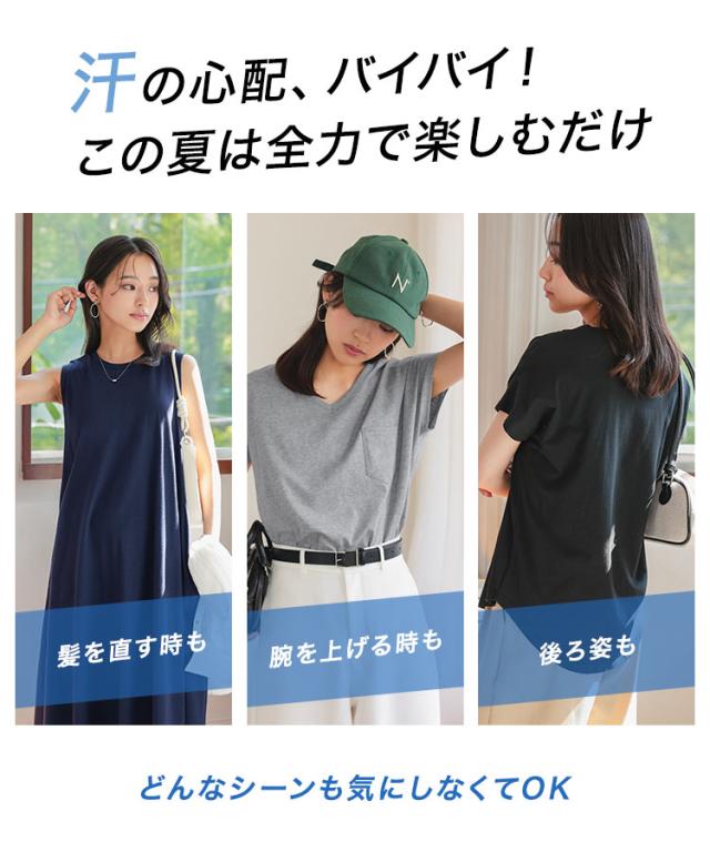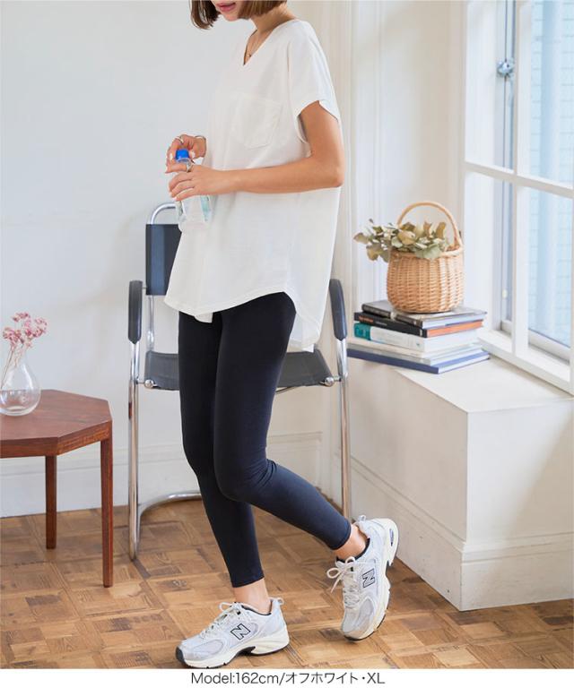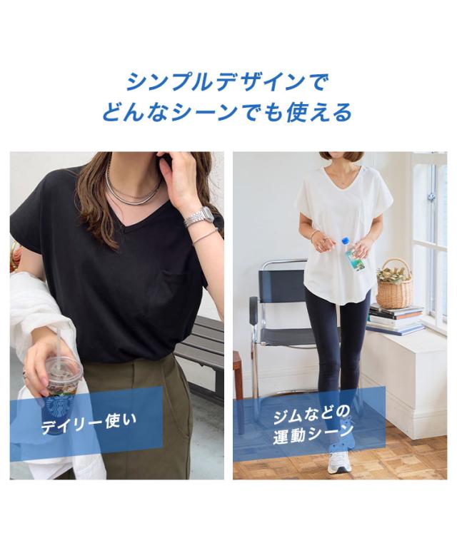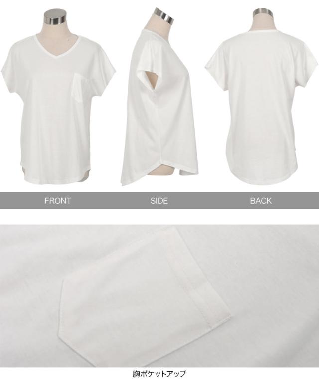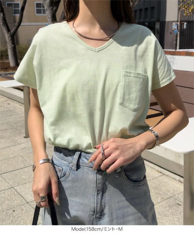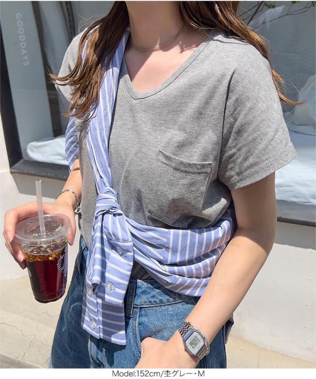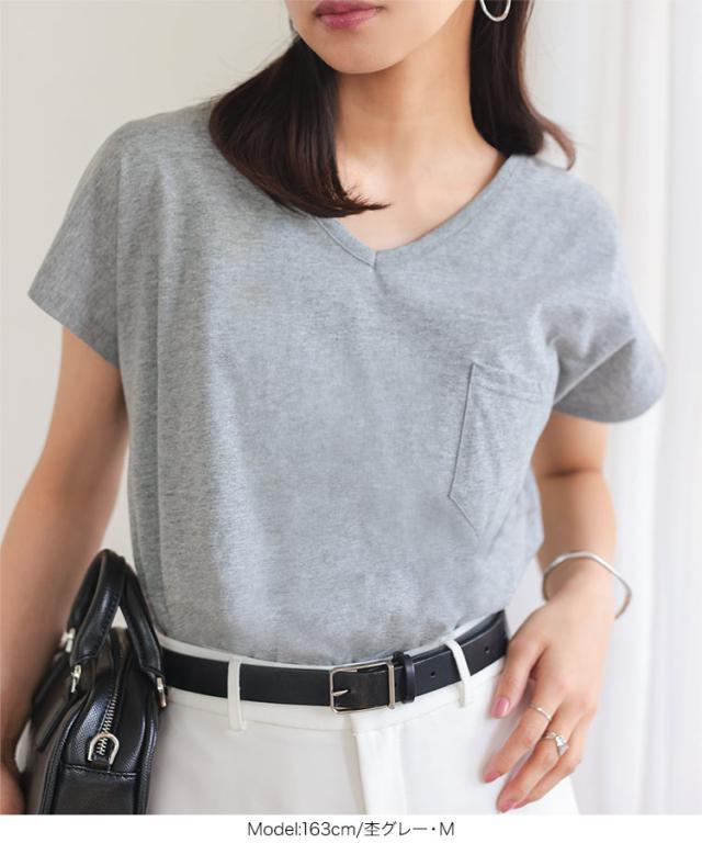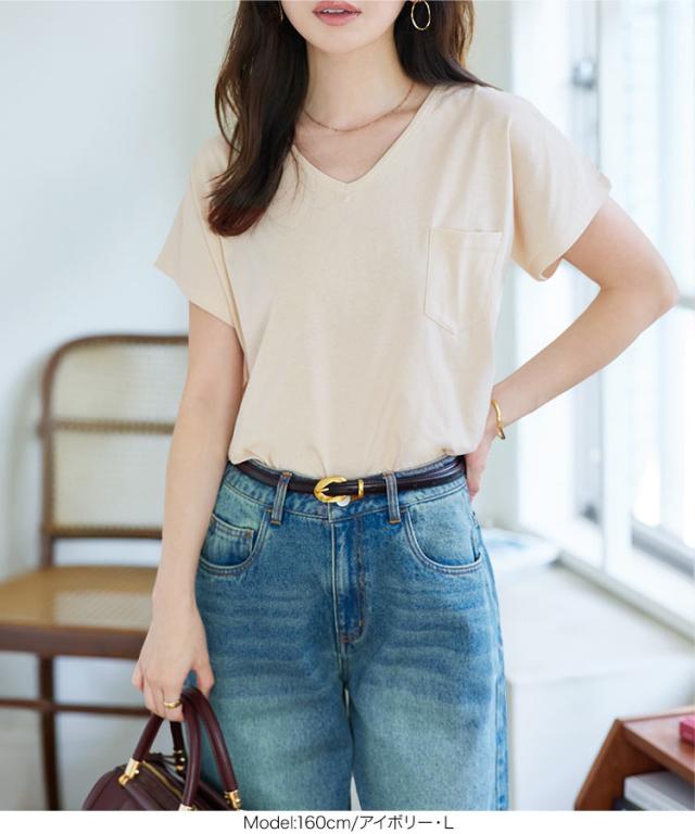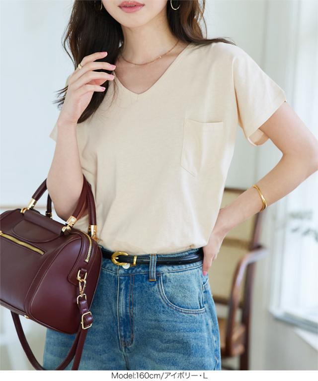春新作 [ M L XL 汗じみ防止&UVカット ] ポケット付きVネックTシャツ C7575 入荷済 レディース 20代 30代 40代 Tシャツ ベーシック シンプル トップス カットソー 綿100 コットン シンプルT ベーシックT コットンT 汗じみ防