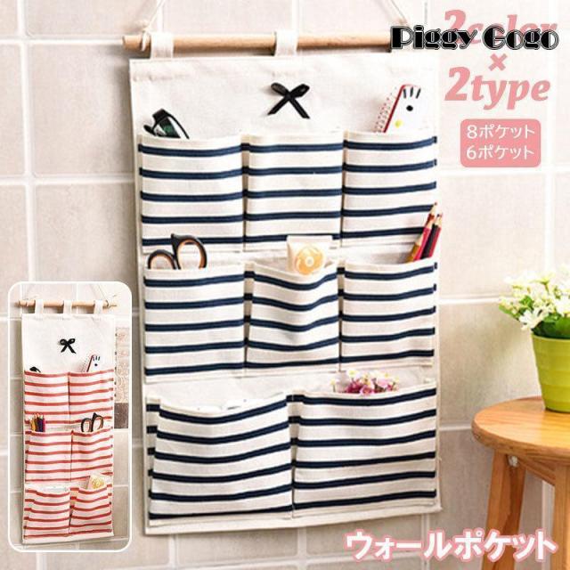 ウォールポケット 壁面収納 壁掛け 吊り下げ 6ポケット 8ポケット ボーダー リボン 小物収納 雑貨 整理 おしゃれ かわいい カジュアル