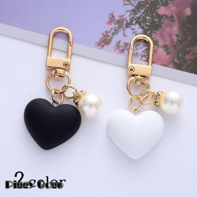 キーホルダー キーチャーム バッグチャーム レディース 女性用 ハート型 フェイクパール 鍵 可愛い おしゃれ 白 黒 プレゼント 贈り物 ギフト 誕