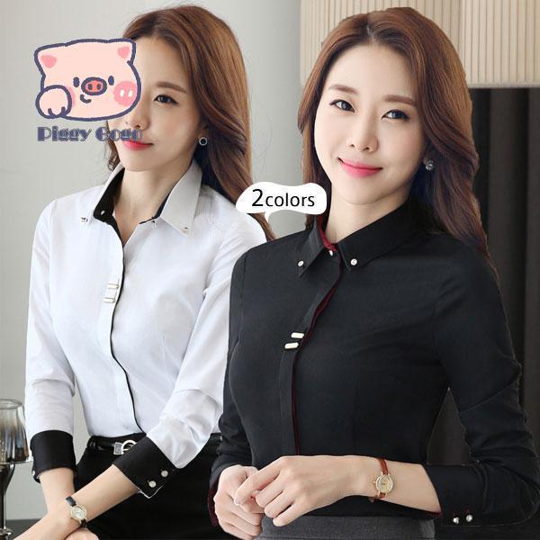 ブラウス ワイシャツ レディース 長袖 フォーマル ビジネス 白 黒 OL 事務服 形態安定 無地 カジュアル おしゃれ 通勤 就活 仕事 制服