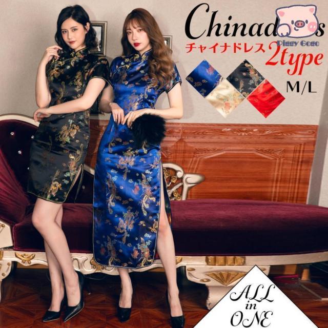 の王道チャイナ服が選べる2タイプで登場!ロング丈とショート丈からお好きなサイズをチョイス!小花に鳳凰が舞う絵柄はとても荘厳で豪奢!