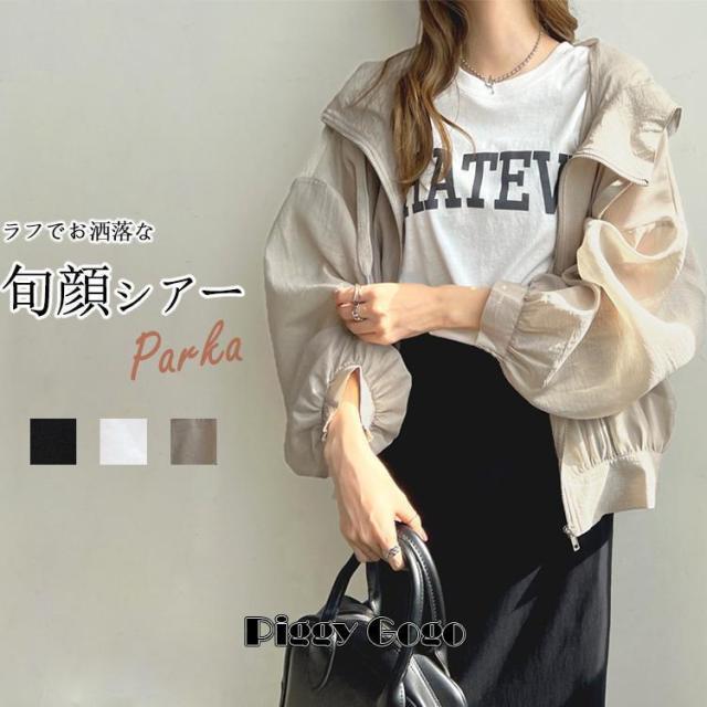 シアーフードマウンテンパーカー ブルゾン ライトアウター レディース アウター ジャケット 羽織り 長袖 シアー UV 大きいサイズ ゆったり フード パーカー
