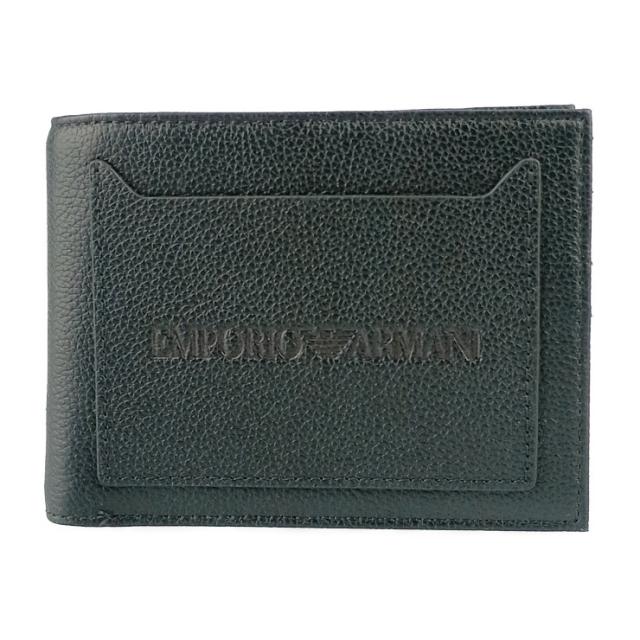 超美品 EMPORIO ARMANI エンポリオ アルマーニ 財布 二つ折り財布 EM001580 AF13788 ブラック レザー メンズ【本物保証】