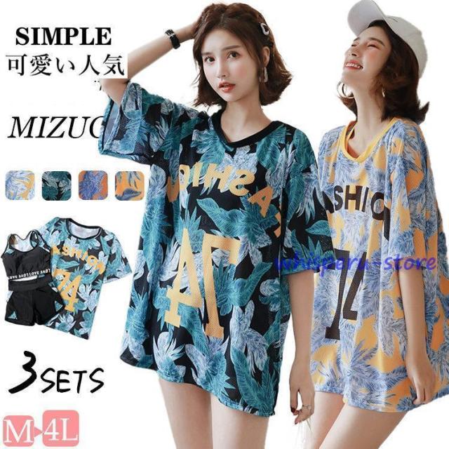 メッシュ レディース 水着 中学生 高校生 女の子 水着セット フィットネス水着 体型カバー 控え 3点セット セパレート タンキニ 30代 20代 学生 小胸にも
