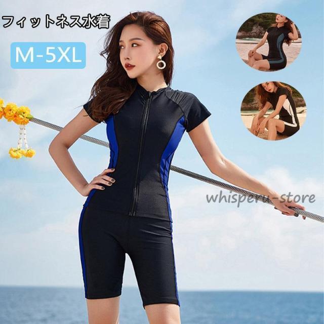 フィットネス水着 レディース セット 半袖 2点セット 水着 女性用 セパレート水着 大きいサイズ 体型カバー