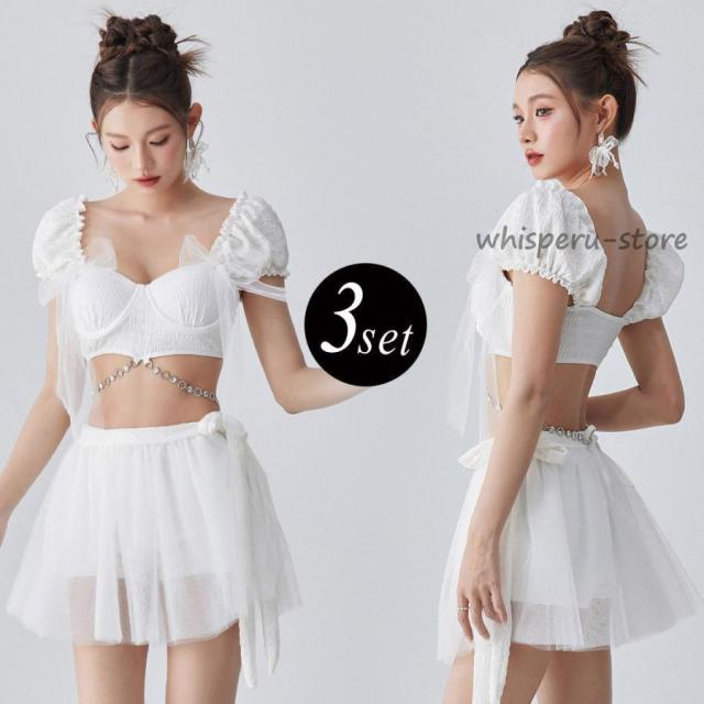 夏 水着 ビキニ ブラ スカート ショートパンツ 3点セット レディース バルーン袖 2way オフショルダー オフショルビキニ チェーン付