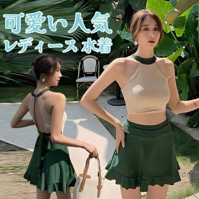 水着 レディース レディース水着 2点セット キャミソール スカート スイムウェア セパレート ショート丈 水泳 ギャザー 袖なし 女性用 高校生 夏 ツー