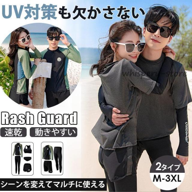 水着 ラッシュガード セット レディース メンズ ペア カップル おしゃれ ママ 日焼け防止 UVカット 体型カバー 速乾 30代 40代 50代 大きいサイズ フィットネス