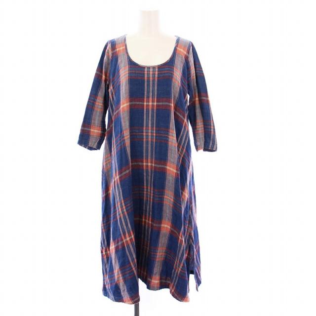 【中古】キャピタル kapital フレアワンピース 七分袖 ロング チェック 0 ブルー /KH レディース