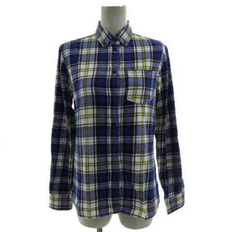 【中古】ロデオクラウンズワイドボウル RCWB シャツ ネルシャツ ボタンダウン 長袖 コットン チェック 青 紺 白 黄 S
