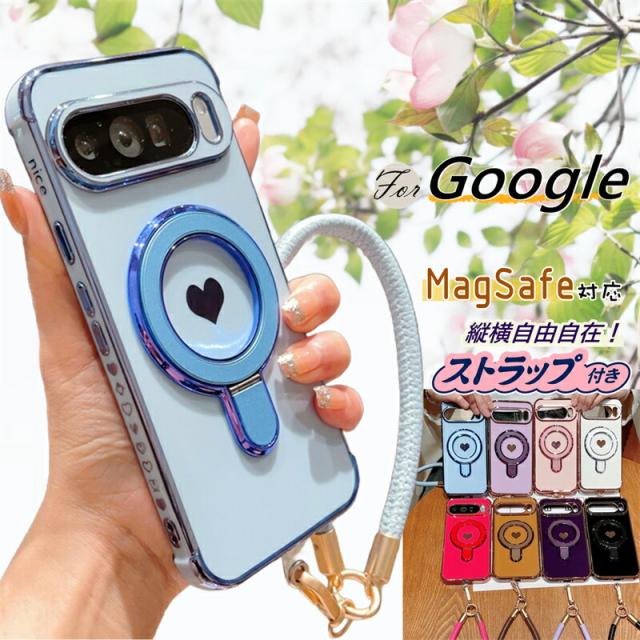 Google 10Pro MagSafeリングスタンド+ストラップ付き ピクセル8a ピクセル9a ケース マグセーフ グーグルピクセル8a ケース Magsafe対応 ホールドリング Google Pixel 7a 8a 8Pro 9 Pro プロ XL 5G スマホケース スタンド 360°回転 おしゃれ 落下防止 スマホハンドストラップ