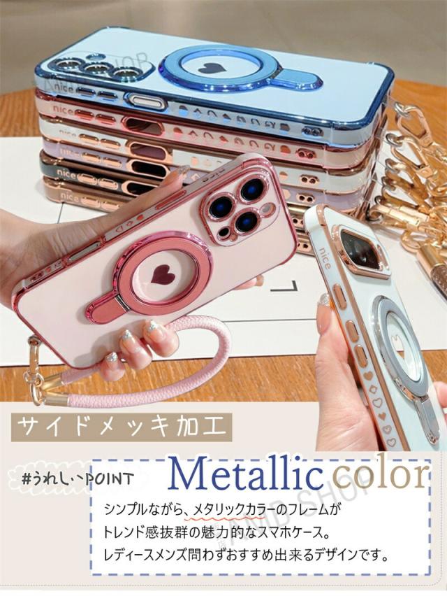 メタリックカラーのフレームがトレンド感抜群の魅力的なスマホケース。