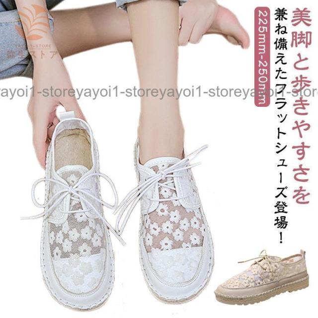 スニーカー レディース シューズ 靴 スリッポン レース 花柄 森ガール キャンバス 透け感 滑り止め 疲れない 歩きやすい フラット 夏 秋