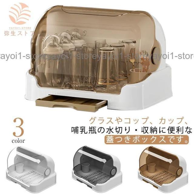グラススタンド コップスタンド 水切りスタンド グラス コップ カップ 哺乳瓶 収納ボックス 蓋付き 透明 大容量 おしゃれ グラス立て コップ立て