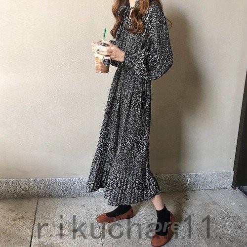 ワンピース レディース ファッション 20代 30代 40代 50代 女性 秋 秋物 秋服 冬 冬物 冬服 春 春物 春服装 花柄 シフォン プリーツ ミモレ丈 リボン