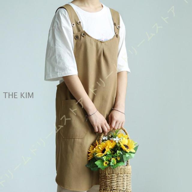 【便利性があり】シンプルなンデザインのエプロンですから、直接に着ることができます。着脱が簡単です。エプロンの前には2つのポケトがあり、小物の収納にとっても便利。ポケット付きなのでどんな場面でも重宝します