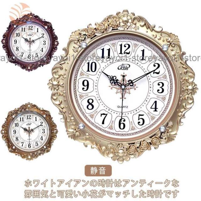 壁掛け時計 おしゃれ アンティーク インテリア 掛け時計 薔薇柄 ローズ アイアン 丸 ヨーロッパ調 アンティーク 文字盤 英数字 無音 静音 16イ