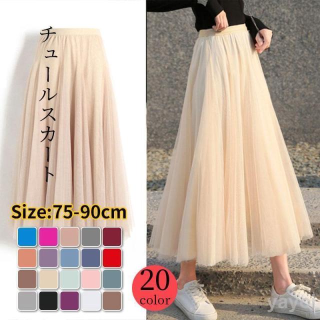 レディース ボトムス スカート ロングスカート マキシスカート フレアスカート チュールスカート ボリュームスカート フレア ウエストゴム 配色 おうちで洗える