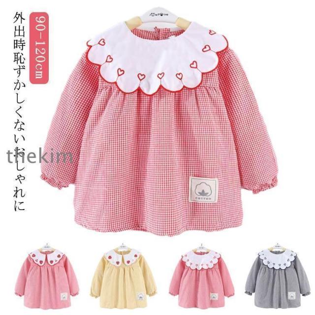外遊び 女の子 刺繍 長袖スモック 可愛い ベビースモック お食事 春 チェック柄 エプロン 汚れ防止 保育園 外遊び スモックブラウス