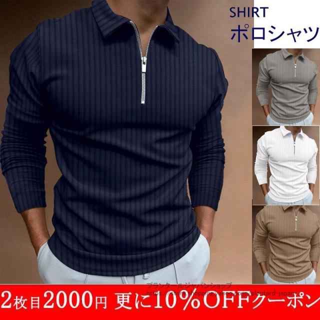 ポロシャツ メンズ ゴルフシャツ 長袖 ジッパー ボーダー カジュアル ビジネス おしゃれ ゴルフウェア 紳士服 秋冬 スポーツ カットソー 送料無料セール!