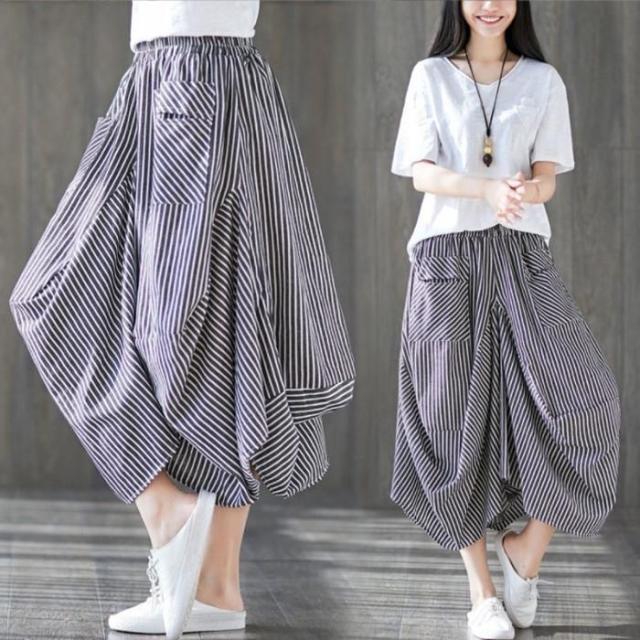 ワイドパンツ パンツスカート レディース 夏 ふんわり スカチョ 綿麻 ガウチョパンツ サルエルパンツ 九分丈 ゆったり 大きいサイズ カジュアル 夏物 不規則