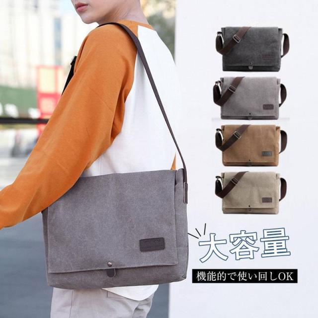 ショルダーバッグ メンズ バック 大容量 キャンバスバッグ 帆布 通勤 通学 カジュアル アウトドア 入学 A4 小物入れ ポケット 送料無料