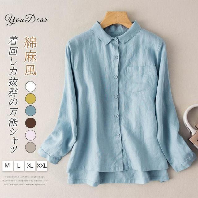 シャツ レディース シャツブラウス ガーゼシャツ 春 夏 秋 長袖 リネンシャツ 綿麻風 トップス シンプル オフィス ゆったり 大きいサイズ 40代 前開け 通勤