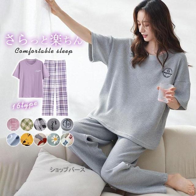 パジャマレディース ルームウェア 夏 チェック柄 冷感 半袖 寝巻き ひんやり 大人 部屋着 薄手 旅行 おしゃれ ナイトウエア 上下セット
