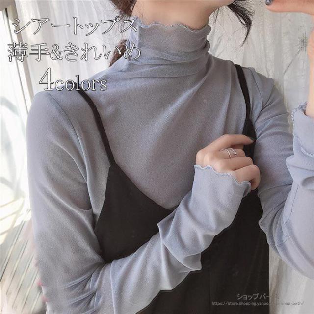 チュールトップス カットソー シアートップス レディース 長袖 ハイネック メロウ インナー 透け感 レイヤード 薄手 きれいめ