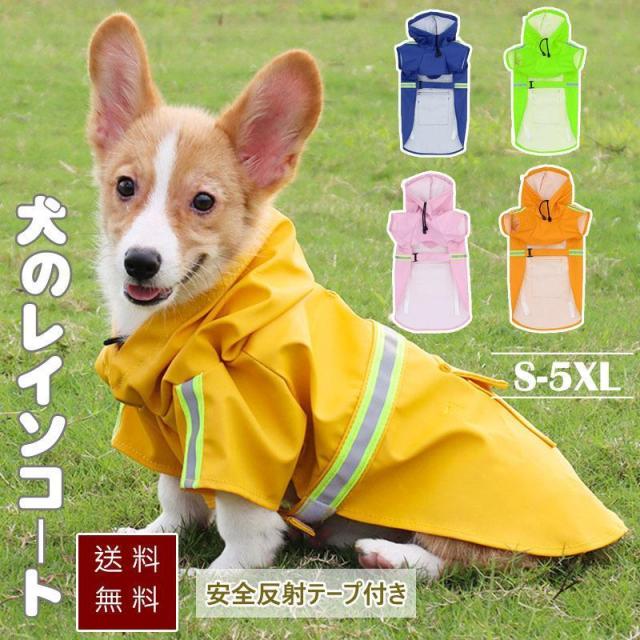 着せやすい犬用レインコート 防水 安全反射テープ付き ポンチョ 犬 服 犬の服 雨具 梅雨 ドッグウェア 小型犬 中型犬 大人気 犬用 つなぎ 雨具 お出かけ
