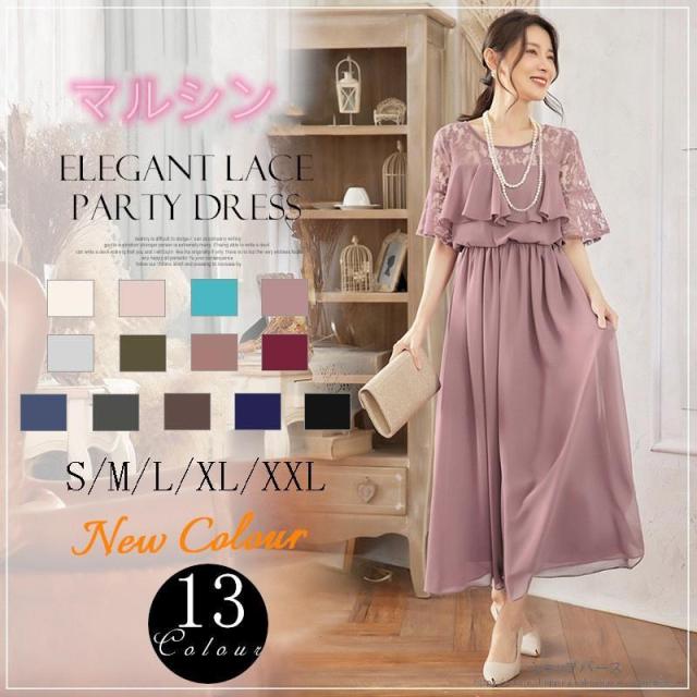 パーティードレス 結婚式 ワンピース ロング丈 マタニティ フォーマル レースマキシ きれいめ 楽チン レディース パーティー大人 可愛い 袖あり
